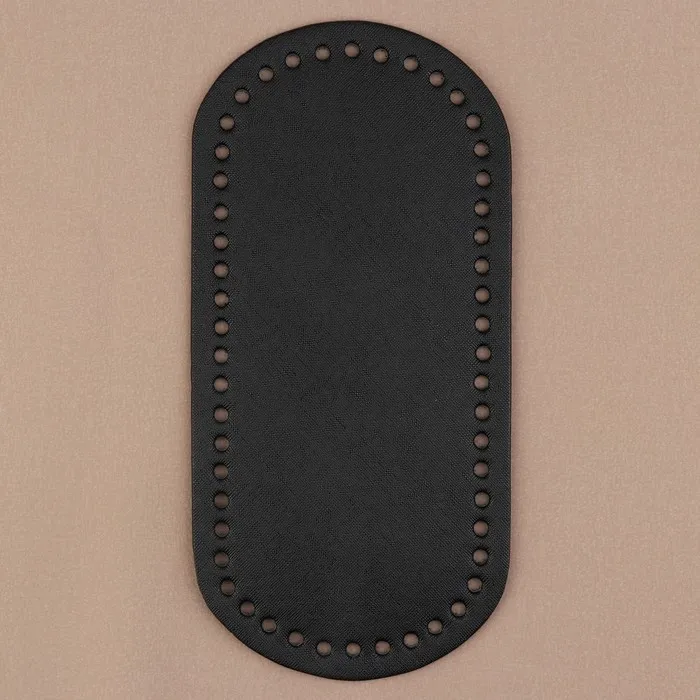 Овальное основание 25×12 см из чёрного кожзама — универсальное решение для создания стильных дорожных сумок и вместительных клатчей. Удлинённая форма оптимальна для переноски документов и необходимых мелочей, сохраняя элегантный силуэт.