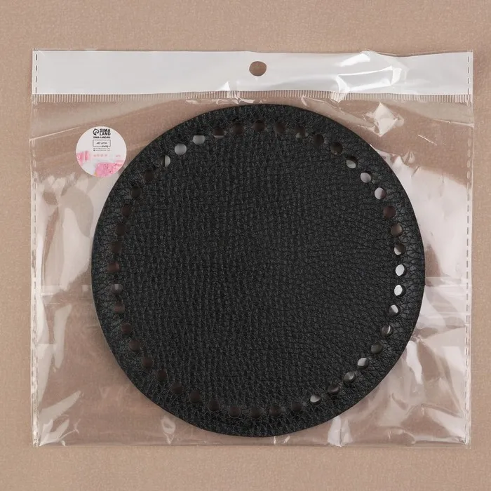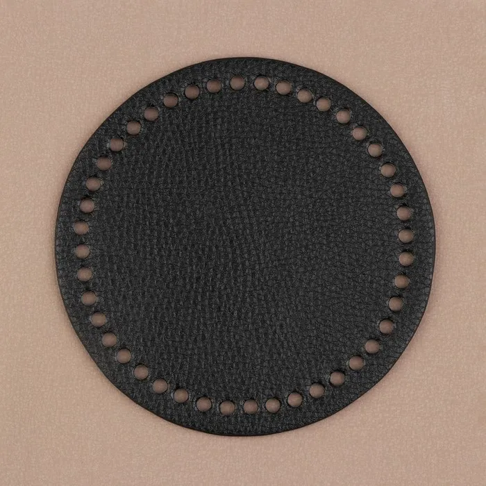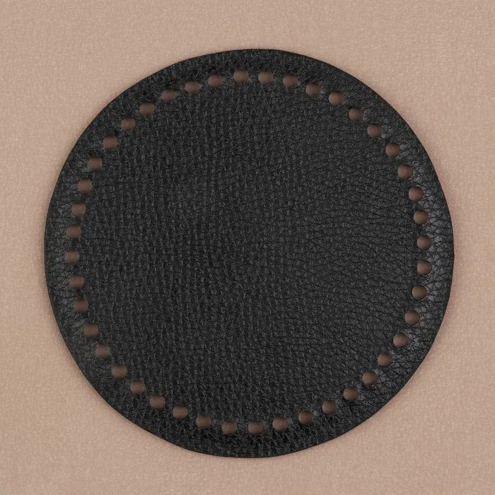 Круглая основа диаметром 15 см — идеальное решение для создания миниатюрных сумок и аксессуаров. Чёрный кожзам придаёт изделиям аккуратный вид, а компактный размер делает эту заготовку особенно востребованной для небольших проектов.