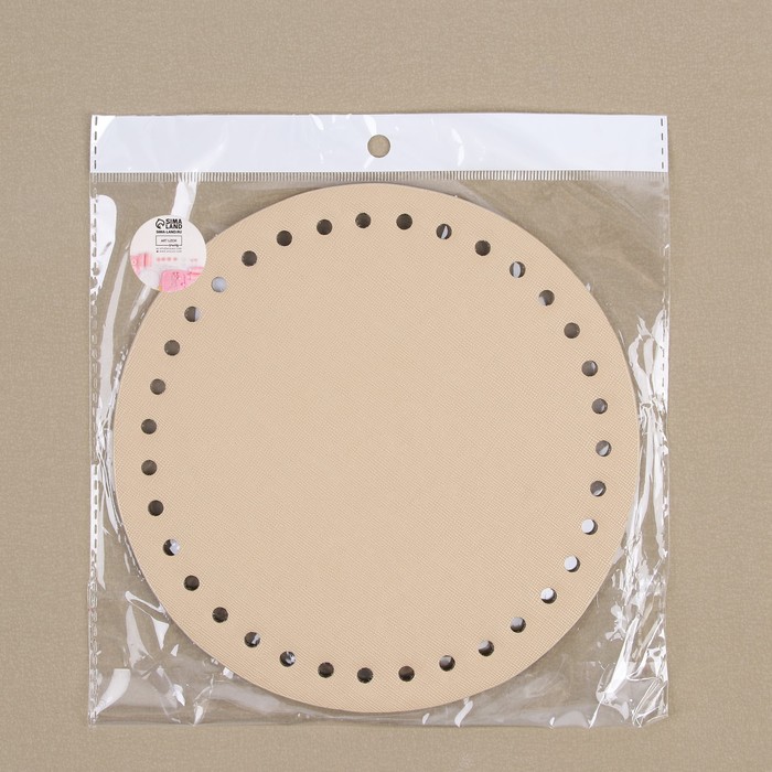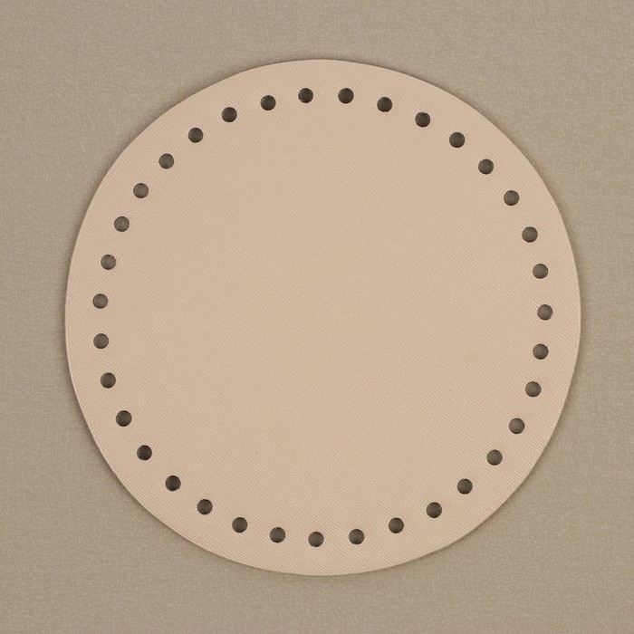 Круглая основа бежевого цвета — универсальная заготовка для создания элегантных сумок и аксессуаров. Диаметр 18 см подходит для большинства компактных моделей, а нейтральный оттенок легко сочетается с разными материалами и фурнитурой.