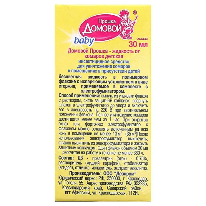 Назначение: для уничтожения комаров в помещениях в присутствии детей любого возраста.