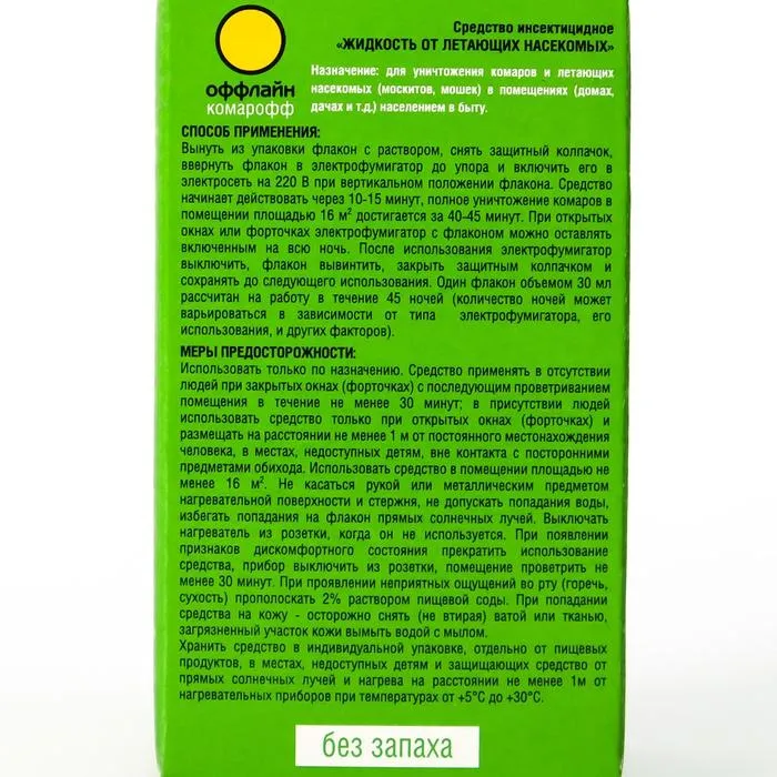 Дополнительный флакон-жидкость от комаров «Комарофф», без запаха, 45 ночей — Характеристики