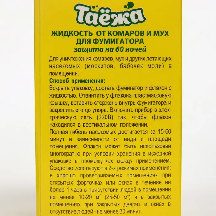 Дополнительный флакон-жидкость "Таежа", от комаров и мух, без запаха, 60 ночей, 40 мл — Характеристики