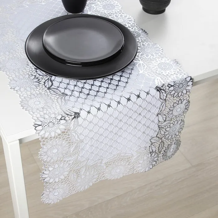 Дорожка ажурная для стола «Букет», 84×40 см, ПВХ, серебряная — Характеристики