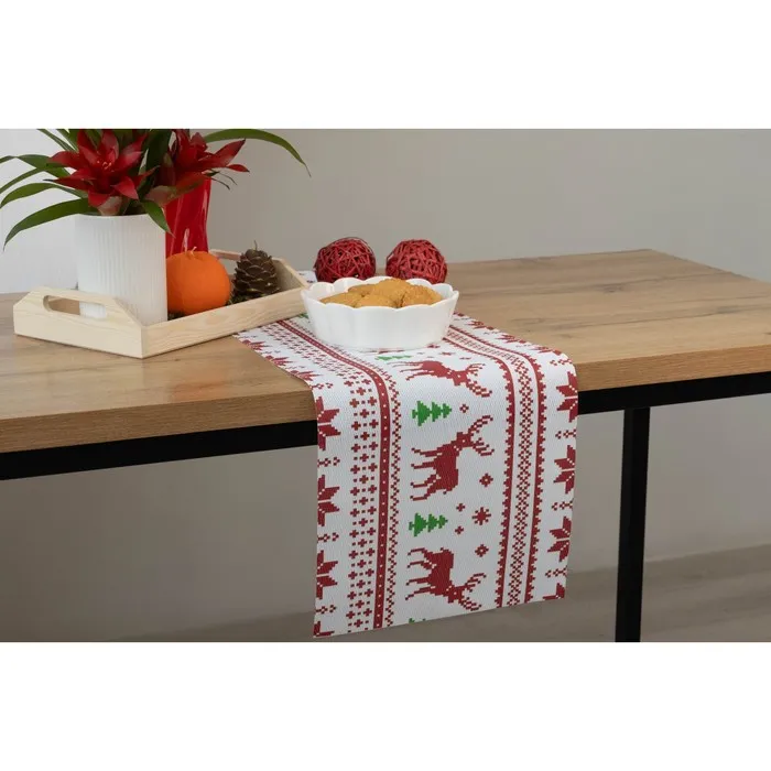 Добавьте в свой дом атмосферу новогоднего волшебства с изысканной дорожкой, ставшей идеальным акцентом для праздничного стола. Яркие красно-белые цвета и стильный дизайн помогут создать уют и радость, которых так не хватает в зимние дни, наполняя его духом праздника и теплом семейных встреч.