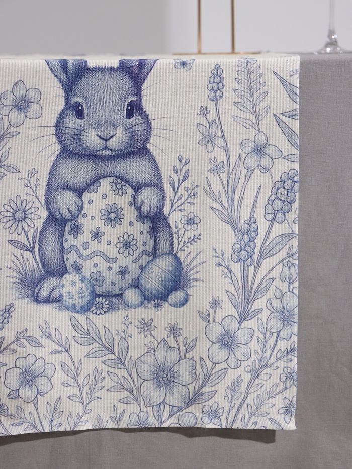 Пасхальная дорожка с кроликом — тёплый, сдержанный акцент для праздничного стола. Бежево-синий принт вдохновлён весенним настроением и пасхальными традициями, но не перегружает интерьер. Прямоугольный формат (50×150 см) подходит для большинства обеденных столов, а натуральный хлопок обеспечивает комфорт в использовании и лёгкий уход. Этот текстиль станет уместным выбором для тех, кто готовит к Пасхе с вниманием к деталям.
