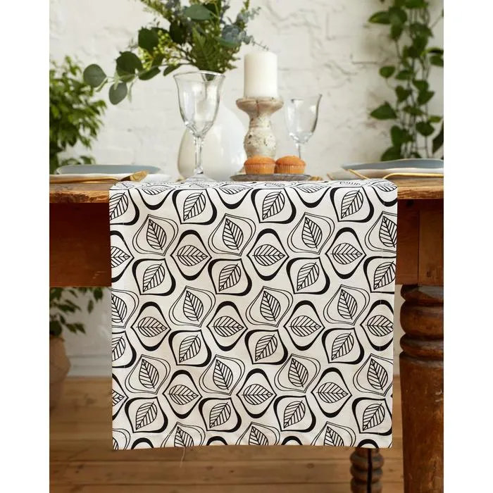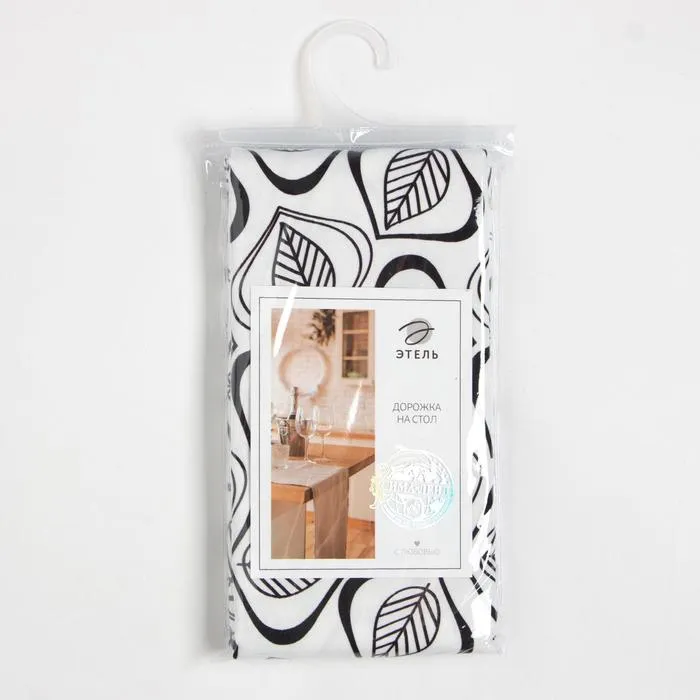 Дорожка на стол Этель Leaves 40×149см, 100% хлопок, саржа 190 г/м², белая/чёрная — Характеристики