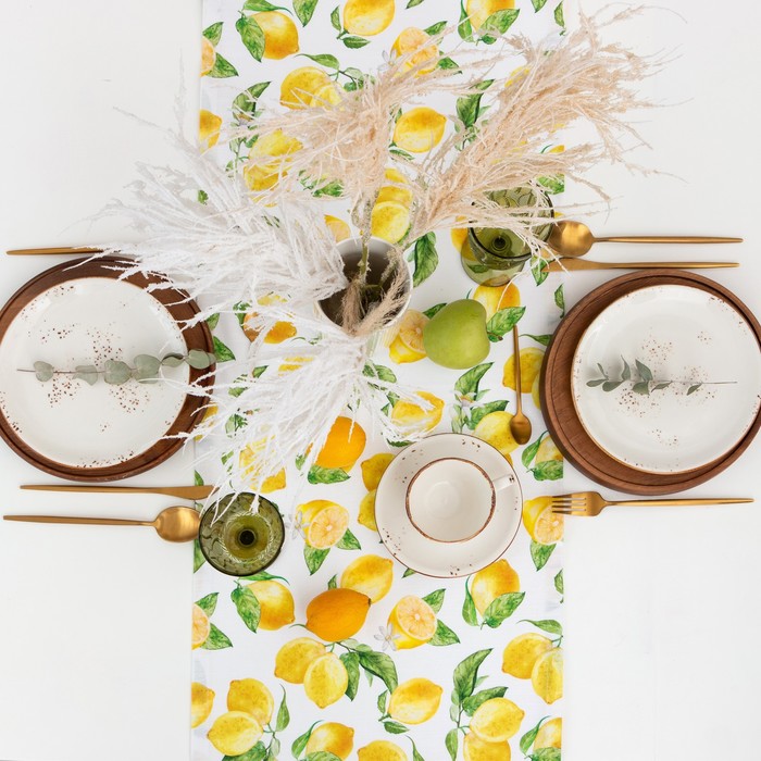 Дорожка на стол Этель «Лимоны», 40×147 см, 100% хлопок, репс 210 г/м², белая/жёлтая — Характеристики