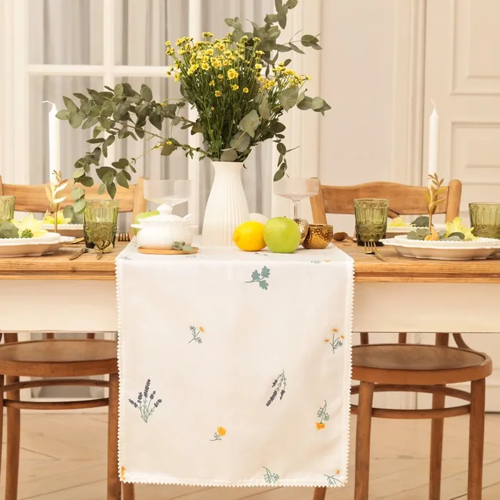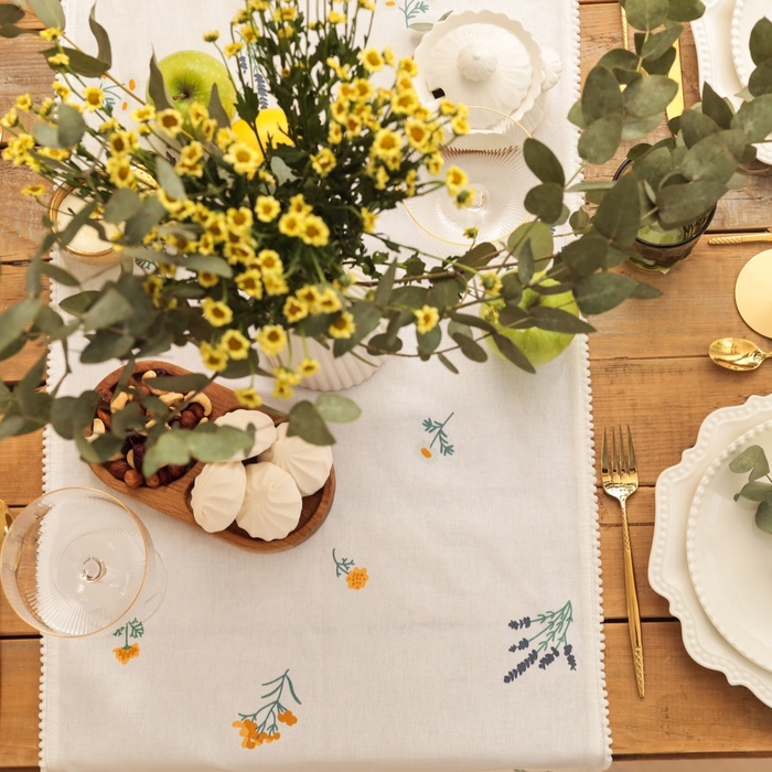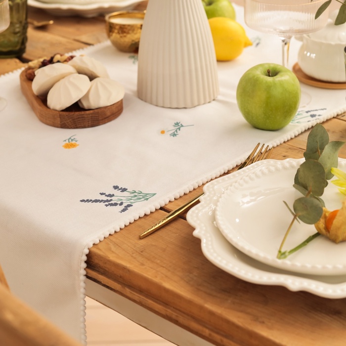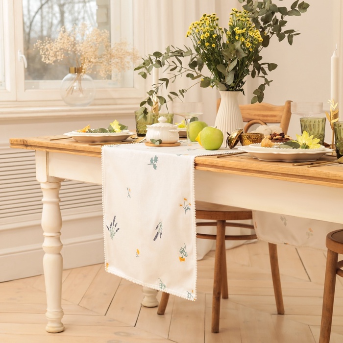 Дорожка на стол Этель «Полевые цветочки» 40×146см, рогожка 176 г/м², 100% хлопок, белая — Характеристики