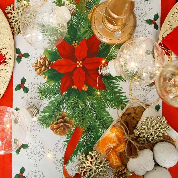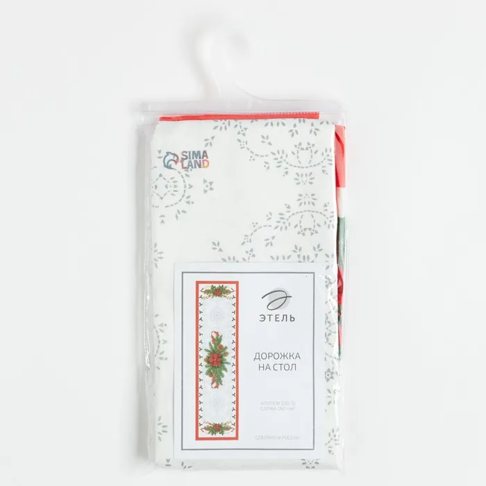 Дорожка на стол Этель «Рождественский бал» 40×147 +/-3см, 100% хлопок, саржа 190 г/м², белая/красная — Характеристики