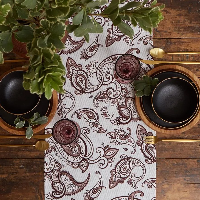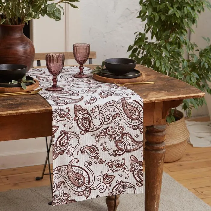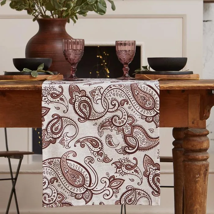 Дорожка на стол Этель «Восточные узоры» 40×149 см, 100% хлопок, саржа 190 г/м², белая/коричневая — Характеристики