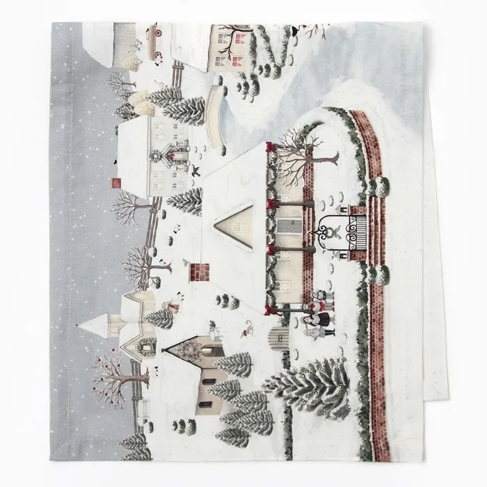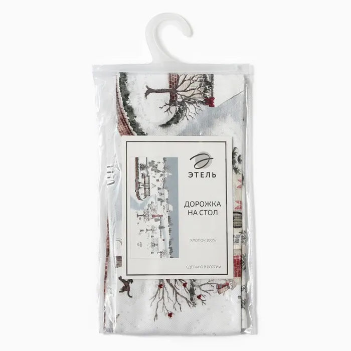 Дорожка на стол Этель «Зимняя деревушка» 30×70 см, 100% хлопок, саржа 190 г/м², белая/серая — Характеристики