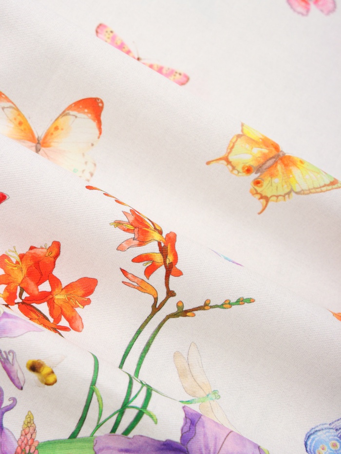 Эта скатерть-дорожка с цветочным принтом создаёт на столе атмосферу свежести и нежности. Плотный хлопок саржевого переплетения приятен на ощупь, хорошо держит форму и надёжно защищает поверхность стола. Узор из луговых цветов напоминает о летнем поле и привносит в интерьер лёгкость природной гармонии.