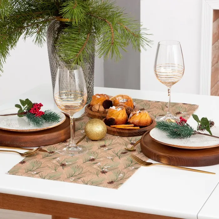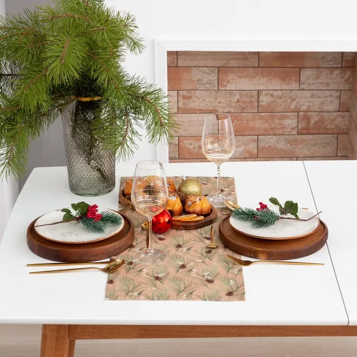 Дорожка на стол новогодняя Этель Spruce branches 30×70см, 100% хлопок, саржа 190 г/м², бежевая — Характеристики