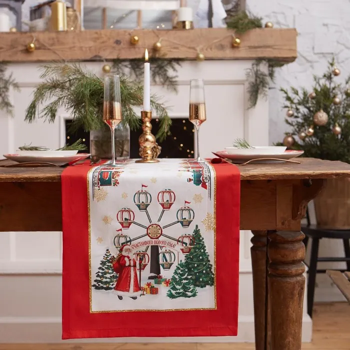 Дорожка на стол новогодняя "Новогодняя ярмарка" 40*147 см, 100% хлопок, саржа 190гр/м2