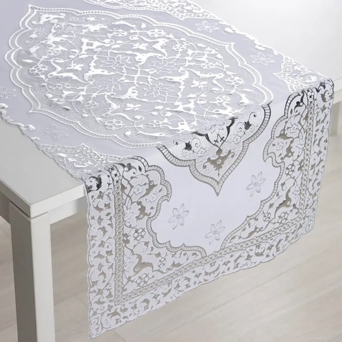 Дорожка имеет размеры 85 × 40 см и выполнена из качественного ПВХ, что гарантирует её долговечность и лёгкость в уходе. Серебристый оттенок активно отражает свет, добавляя загадочности и изысканности вашему столу, а ажурные узоры создают эффект лёгкости и воздушности, идеально подходя как для праздничных, так и для повседневных мероприятий.