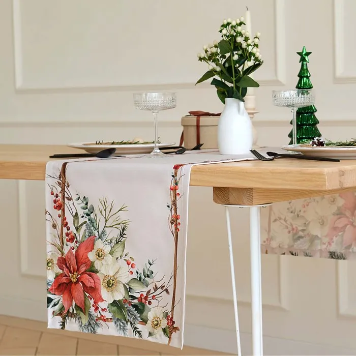 Дорожка новогодняя на стол "Этель" "Пуансетия" 40х147 +/- 5 см, 100% хл, саржа 190 гр/м2 — Характеристики