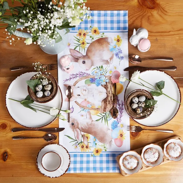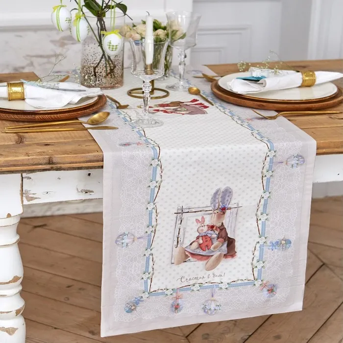 Дорожка пасхальная на стол Этель «Зайчики» 30×70 см, 100% хлопок, саржа 190 г/м² — Характеристики