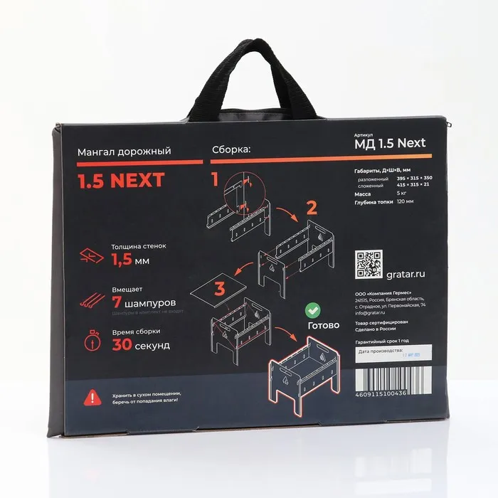 Дорожный мангал "МД1.5", 42.9×31.2×40 см, 1.5 мм, разборный, с ручками — Характеристики