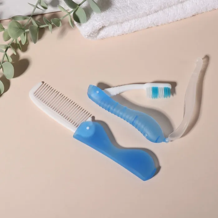 Дорожный набор, 2 предмета: расчёска, щётка, 5.5×11(±1) см, голубой