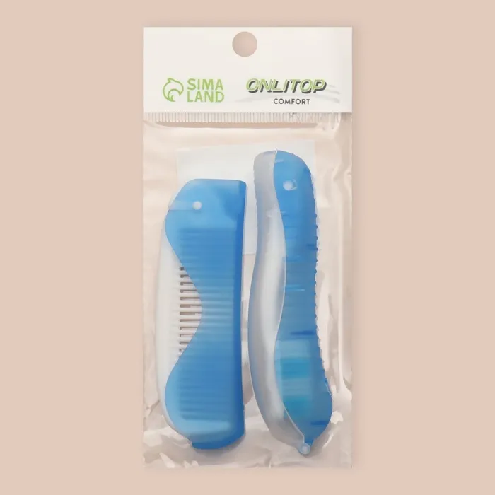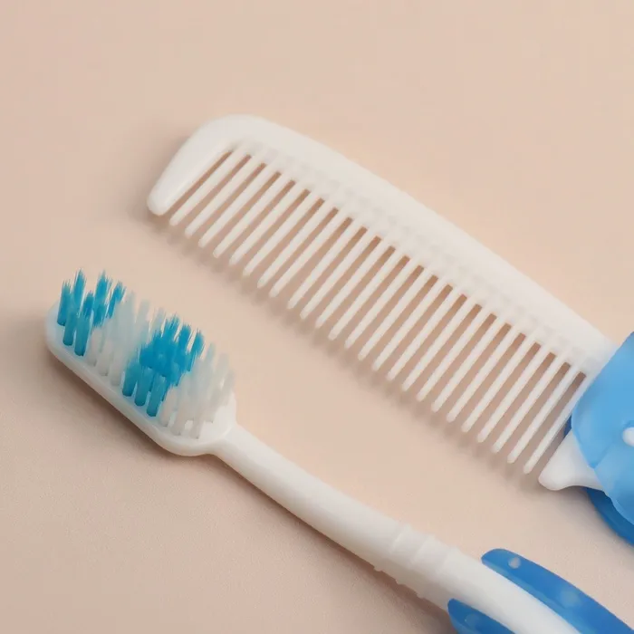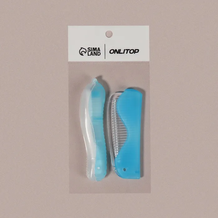 Дорожный набор, 2 предмета: расчёска, щётка, 5.5×11(±1) см, голубой — Характеристики