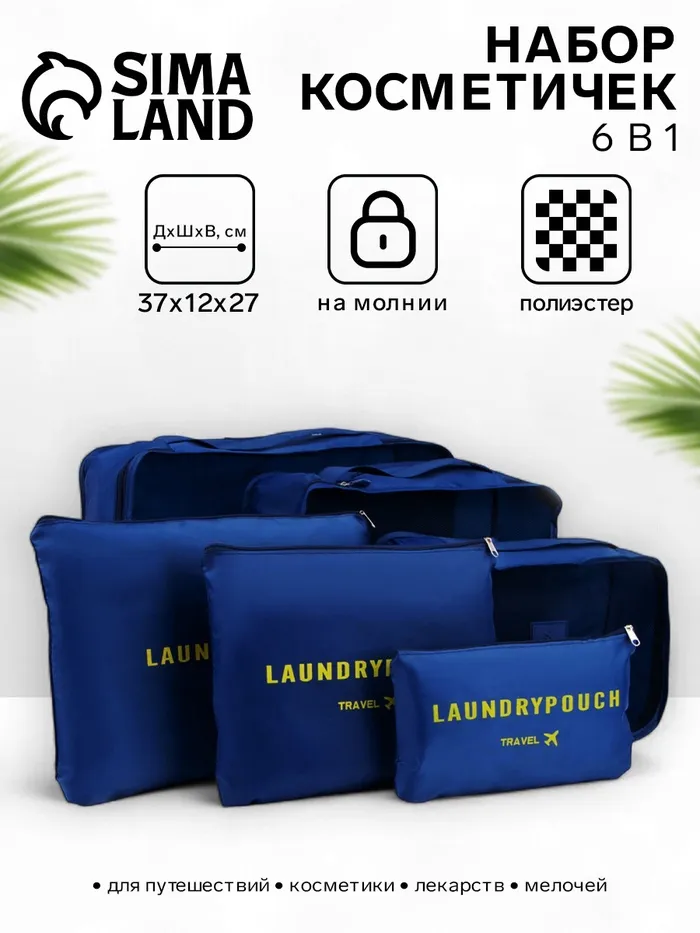Дорожный набор органайзеров-косметичек на молниях, 6 в 1, синий — Характеристики