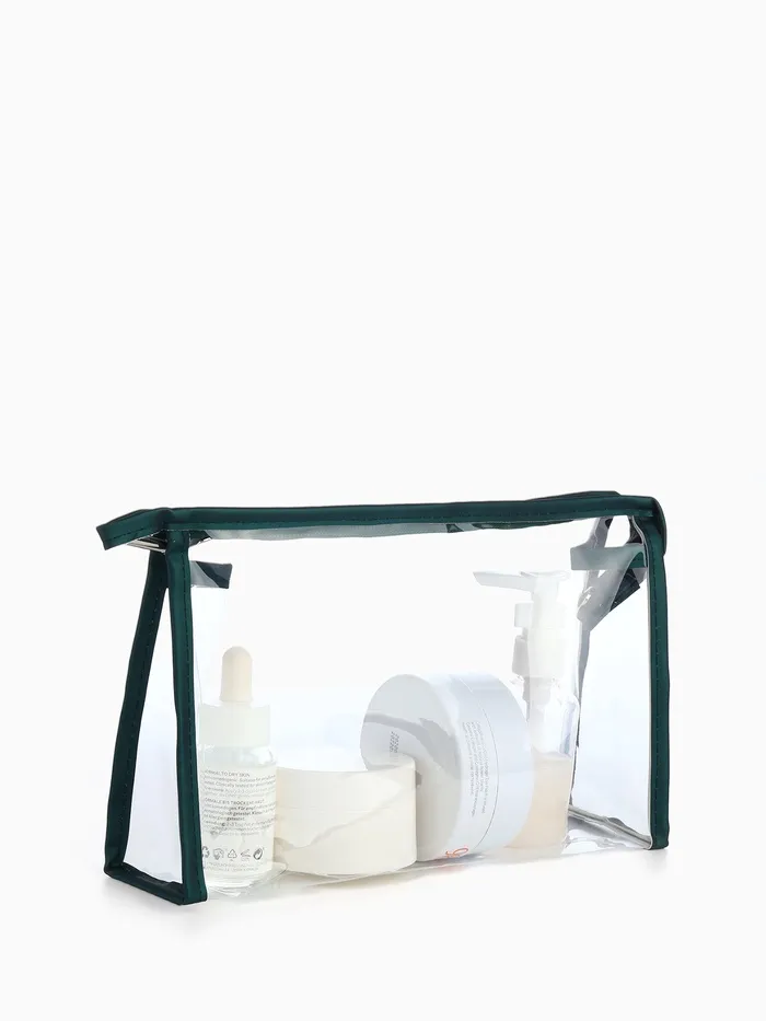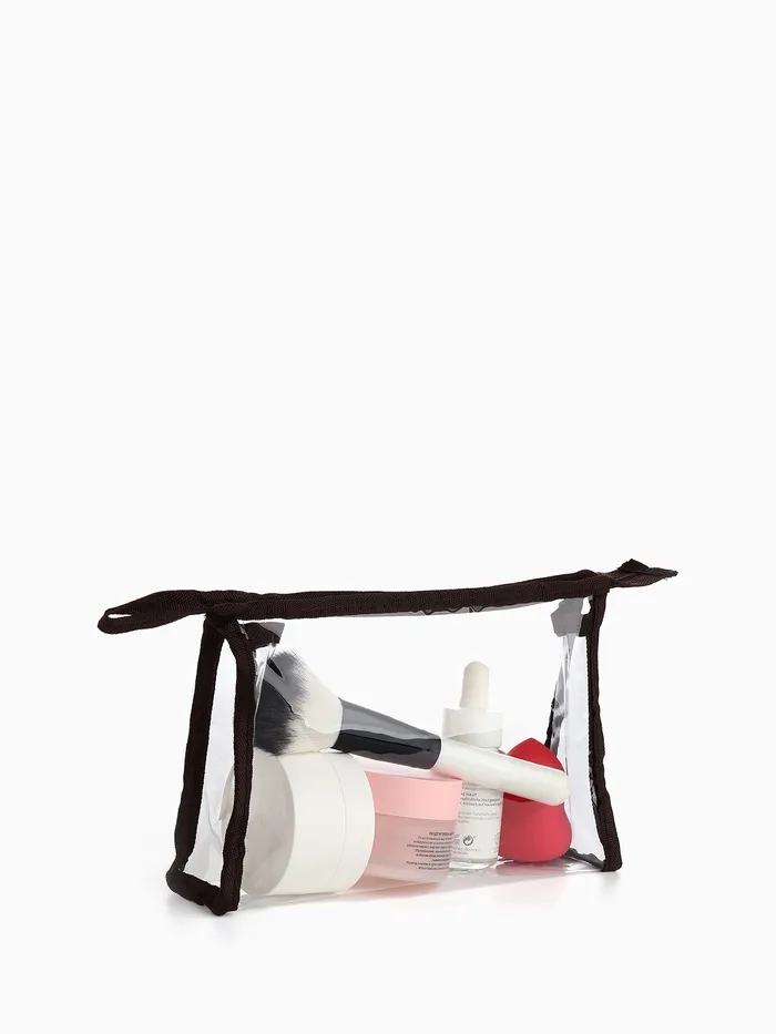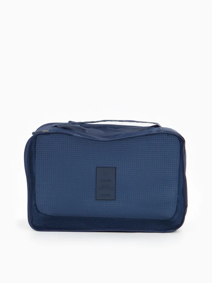 Этот комплект из шести прозрачных органайзеров с молниями помогает навести порядок в дорожных вещах и косметике. Каждая текстильная косметичка сохраняет содержимое видимым и защищенным, а яркий синий цвет с графичными надписями легко идентифицируется среди багажа. Набор подходит для организации средств гигиены, аксессуаров или мелкой электроники.