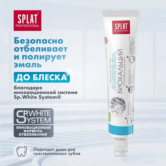 КОМПЛЕКСНАЯ зубная паста с биоактивным Кальцисом, полученным из яичной скорлупы, и ГИДРОКСИАПАТИТОМ – строительным веществом твердых тканей зуба. Паста предназначена для ВОСТАНОВЛЕНИЯ эмали и СНИЖЕНИЯ ЧУВСТВИТЕЛЬНОСТИ зубов.