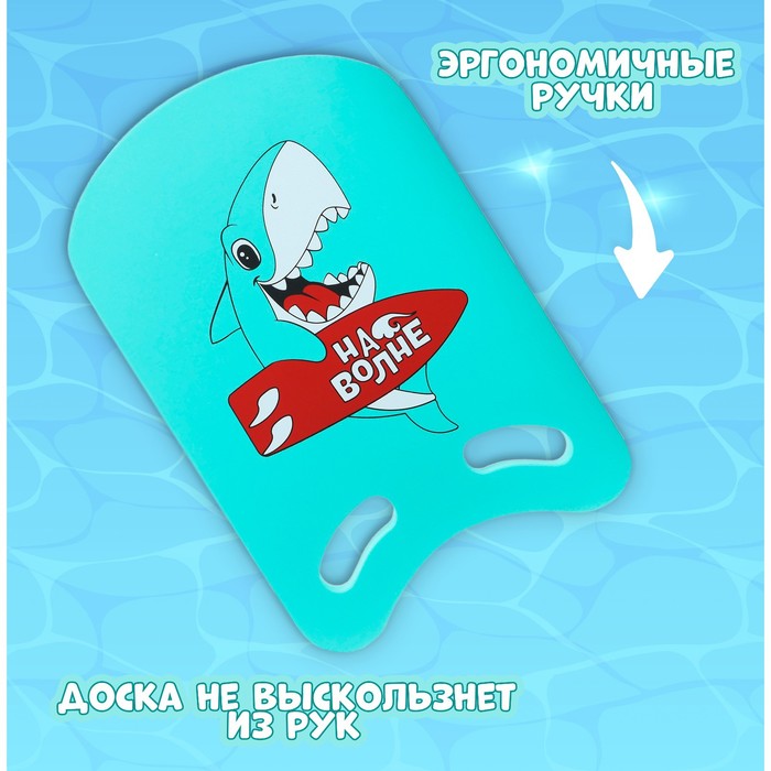 Доска для плавания «На волне: Акула», 36.5×26×2.8 см, бирюзовая — Характеристики