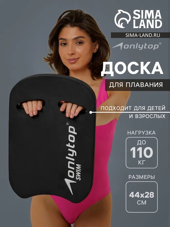 Доска для плавания ONLYTOP, 44х28х3,3 см, цвет чёрный — Характеристики