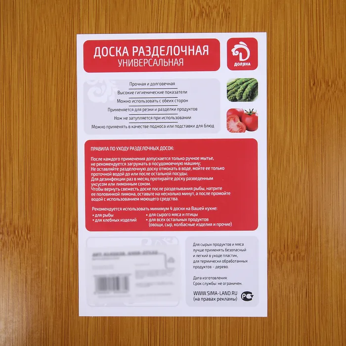 Эта доска идеально подходит для ежедневного использования и станет надежным помощником на вашей кухне, помогая красиво подавать различные блюда к столу.