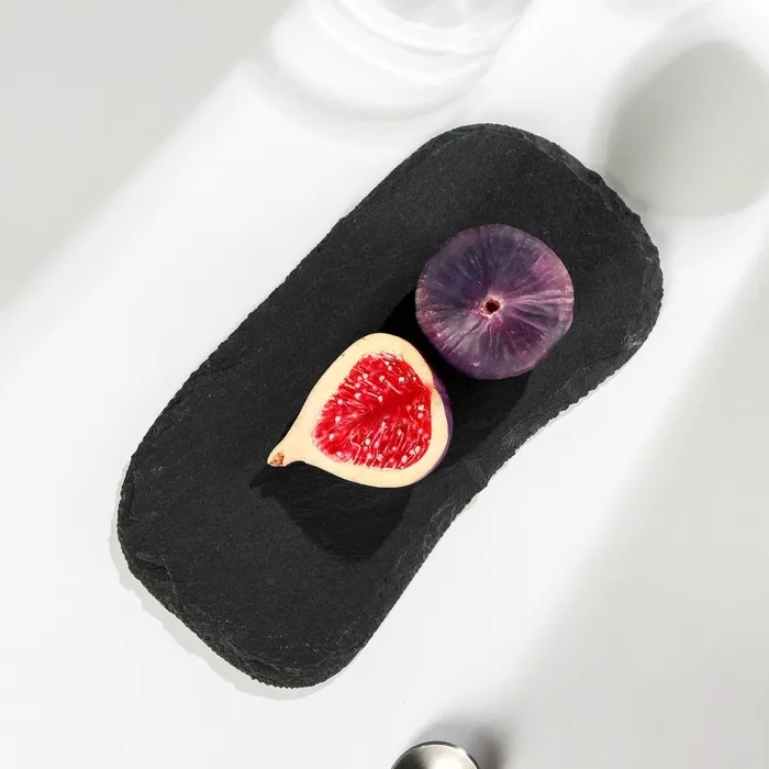 Эта доска не только практична, но и очень декоративна. Она станет отличным выбором как для домашнего использования, так и для ресторанного бизнеса. Небольшой размер делает её удобной для индивидуальных порций или небольших закусок, а натуральный камень обеспечивает долговечность и устойчивость к повреждениям.