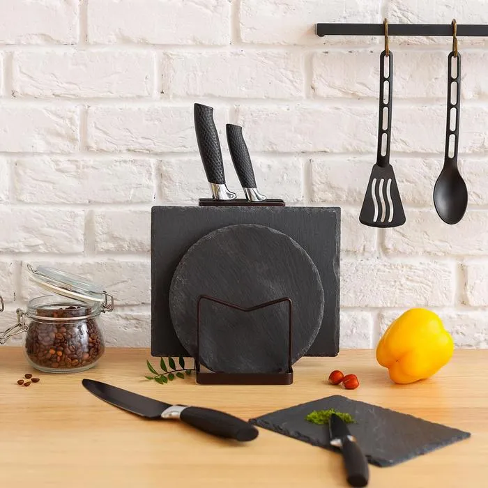 Доска из натурального сланцевого камня поможет эффектно подать блюдо. Стильная рельефная поверхность изделия красиво сочетается с другими предметами сервировки и подходит ко всем видам блюд.