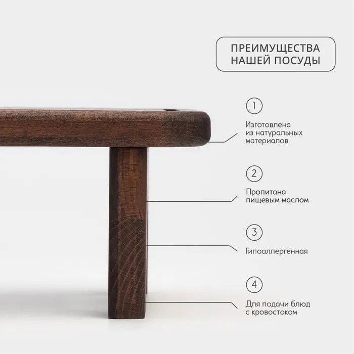 Доска для подачи с кровостоком Wild Kitchen «Большая Компания», 78×20×11 см, на ножках, дерево, тёмный бук — Характеристики