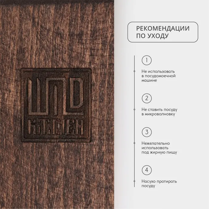 - Очищайте после каждого использования. Доску обязательно нужно мыть вручную в тёплой воде сразу после использования. Замачивание в раковине повредит изделие, ведь от воды древесина может начать портиться.