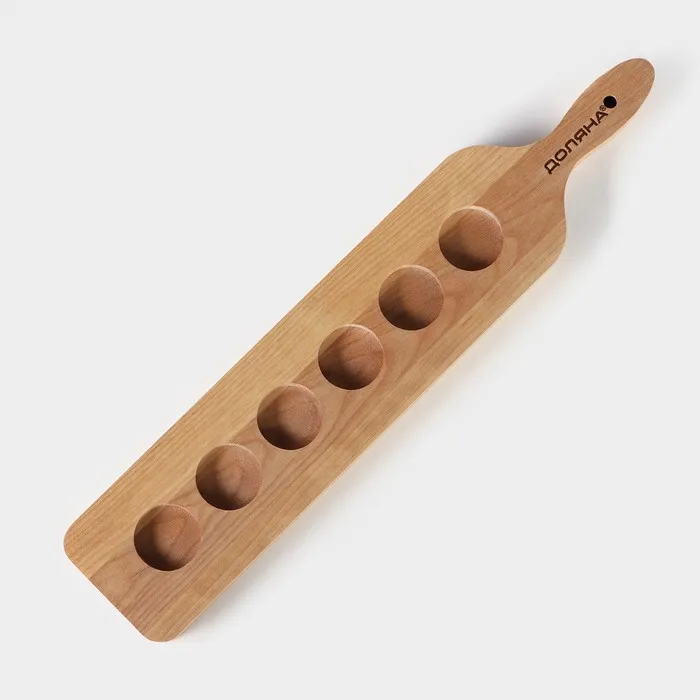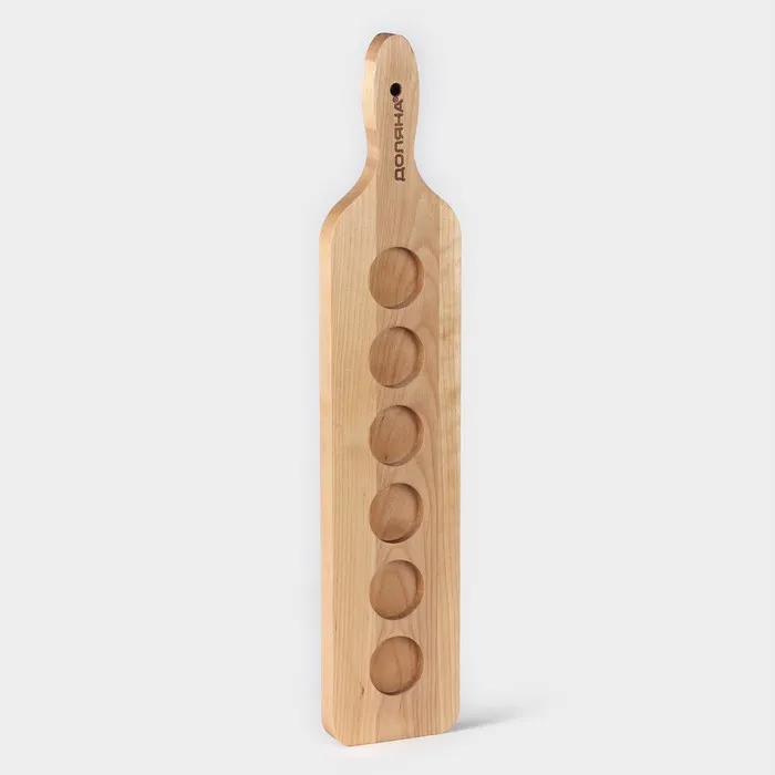Доска для подачи шотов деревянная с ручкой, 45×9×1,8 см, на 6 рюмок, диаметр ячеек 3,9 см, с пропиткой, берёза — Характеристики