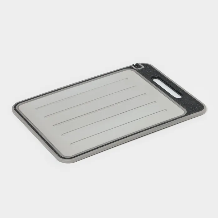 Многофункциональный инструмент, который сэкономит время и место на кухне. Доска Magistro 3 в 1 объединяет в себе удобную поверхность для разделки, эффективную систему размораживания и встроенную точилку для ножей, что делает её незаменимым помощником для каждой хозяйки.