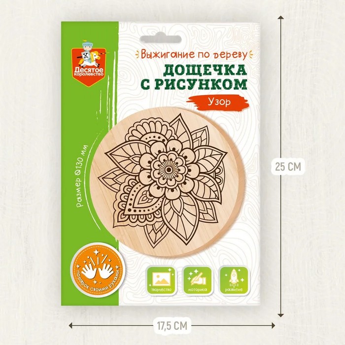 Выжигание по дереву — один из видов увлекательного декоративного искусства, которое может превратиться в настоящее хобби для ребёнка. Украсьте свой дом уютной композицией, созданной в старинной технике. С помощью прибора для выжигания нанесите рисунок на доску по линиям, и у вас получится красивая композиция.