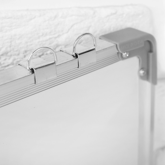 Магнитная доска с двумя рабочими поверхностями комфортна в работе. Одна сторона покрыта пробковым слоем, что позволит крепить печатные материалы с помощью кнопок. Вторая часть оснащена магнитным слоем, на ней удобно писать водным маркером.