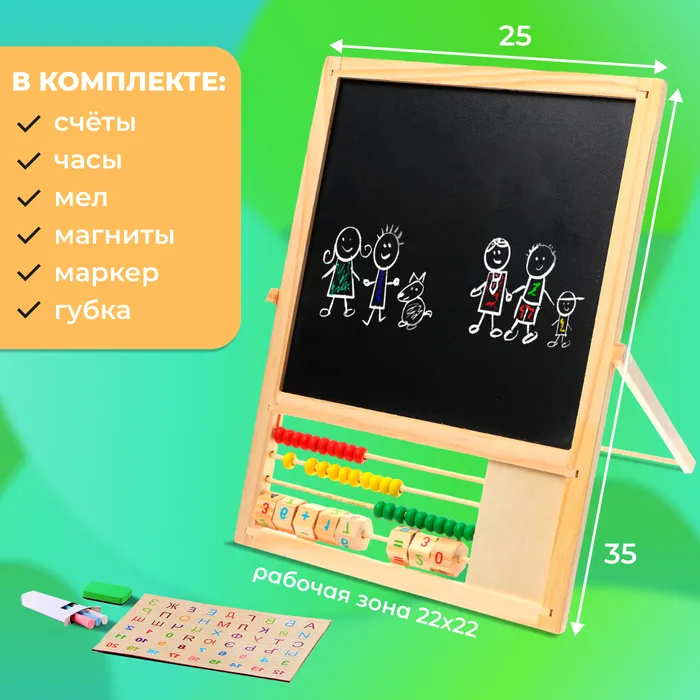Доска магнитная двухсторонняя, на подставке, рабочее поле: 22 × 22 см — Характеристики