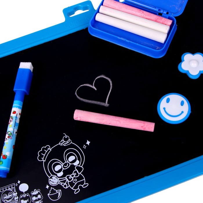 Двусторонняя магнитная доска под маркер и мел — это возможность занять малыша и проявить его художественные навыки без использования бумаги. Ещё она подходит для обучающих занятий, например, чтобы записывать слова или математические примеры. Такая игрушка удобна и практична, ведь изображения и символы легко стереть, а затем воссоздать на чистом холсте.