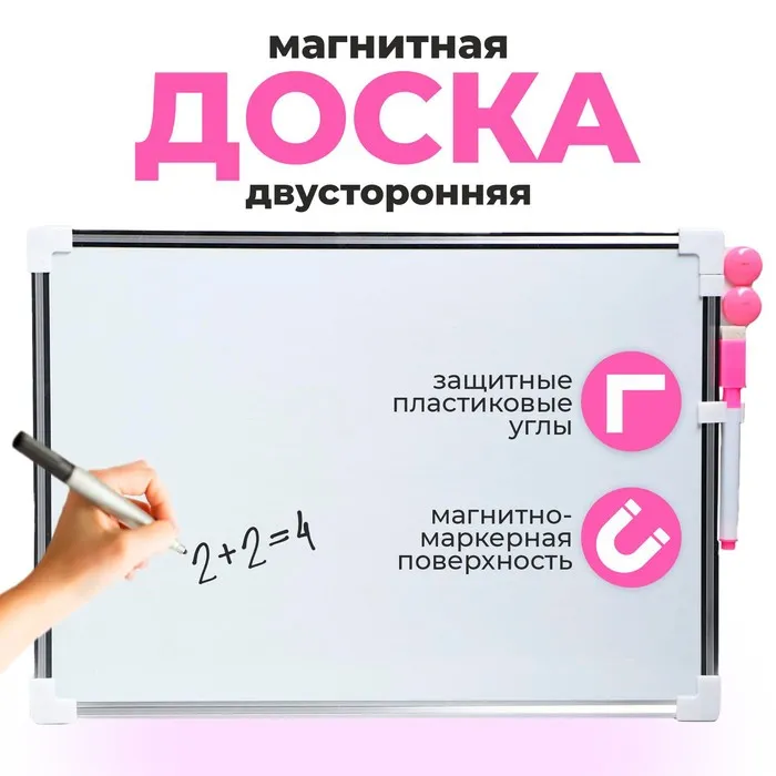 Доска магнитная двусторонняя, 36 × 25 см, маркер и магниты в наборе, без креплений, МИКС — Характеристики