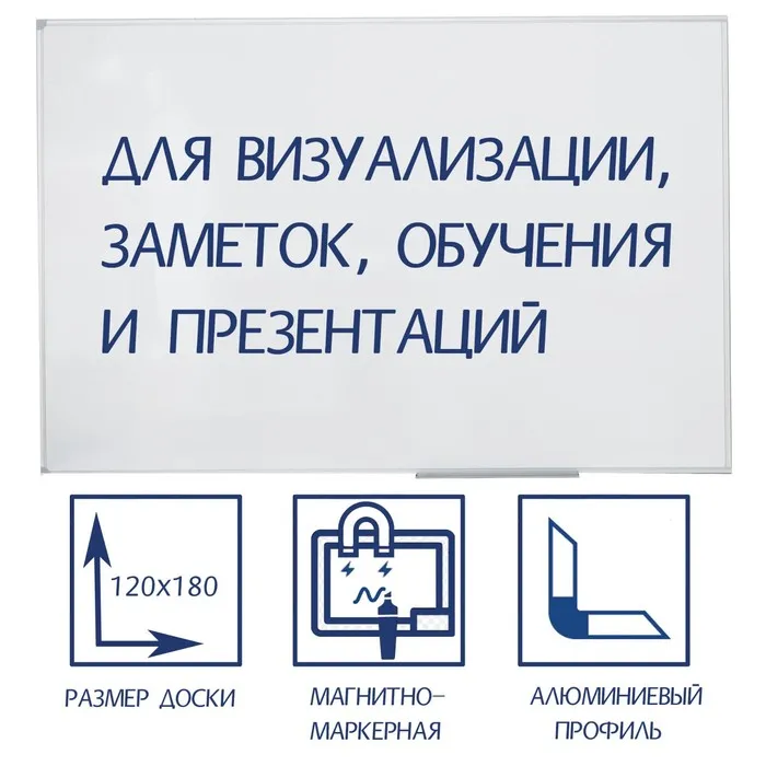 Доска имеет лаковое покрытие, предназначенное для письма специальными маркерами для белой доски.