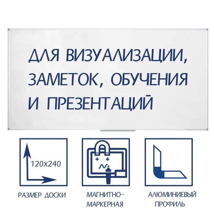 Доска имеет лаковое покрытие, предназначенное для письма специальными маркерами для белой доски.