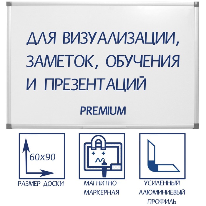 Магнитно-маркерная доска серии PREMIUM превосходно подойдет для совещаний, планирования задач и любого мозгового штурма. Серия PREMIUM имеет усиленный алюминиевый профиль толщиной 17 мм и шириной (видимой части) 20 мм. 4-х точечное крепление доски осуществляется с помощью специальной пластиковой фурнитуры в углах доски, пластиковые заглушки закрывают место крепления. Доски такого вида успешно используются в учебных заведениях, офисах и любых коммерческих помещениях.