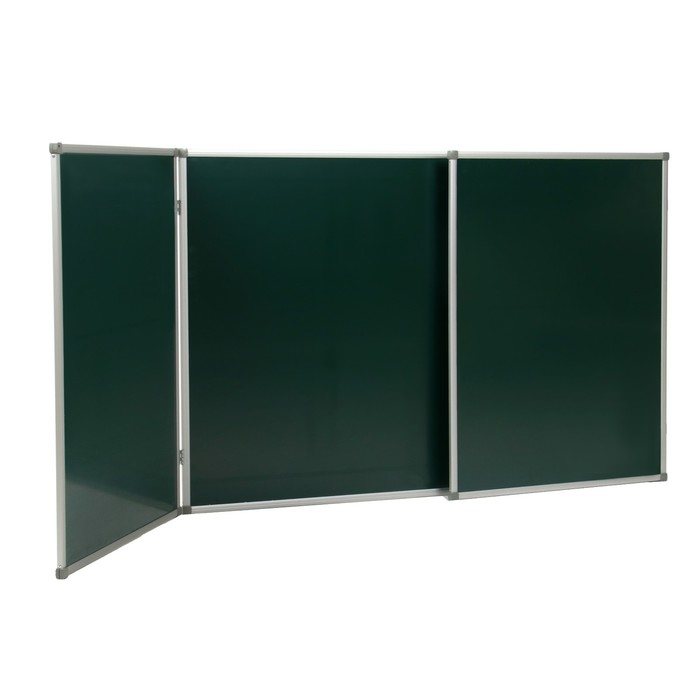 Трехэлементная настенная магнитно-меловая доска предназначена для проведения презентаций и ведения практических занятий в различных группах и школах. Покрытие предназначено для письма мелом, а металлическая поверхность позволяет размещать информацию при помощи магнитов.