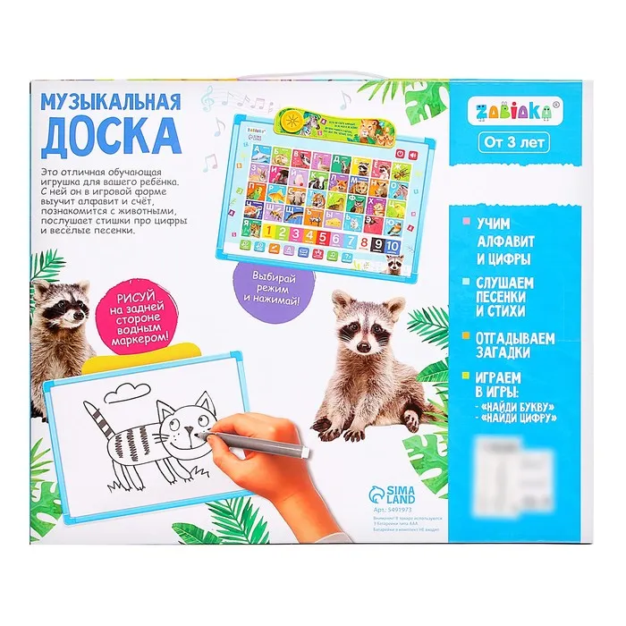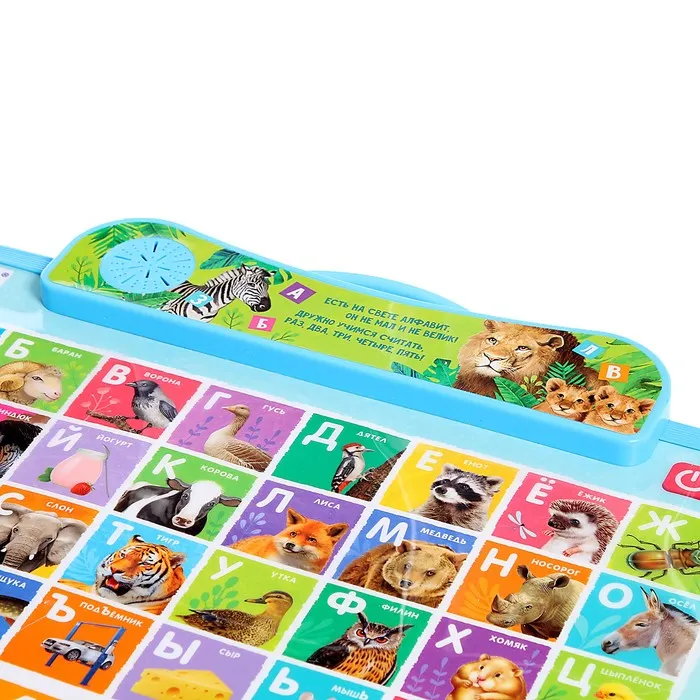 В игровой форме малыш изучит алфавит, счёт, познакомится с животными, послушает стишки про цифры и весёлые песенки.