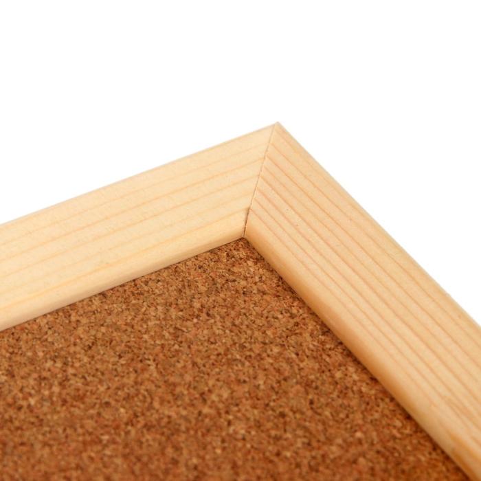 Рабочая поверхность покрыта натуральным пробковым слоем толщиной 1 мм. Доска обрамлена деревянным профилем.