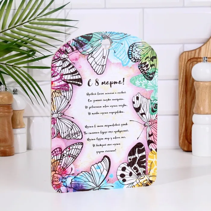 Доска разделочная большая "С 8 марта! Стихи" 27х18 см — Характеристики