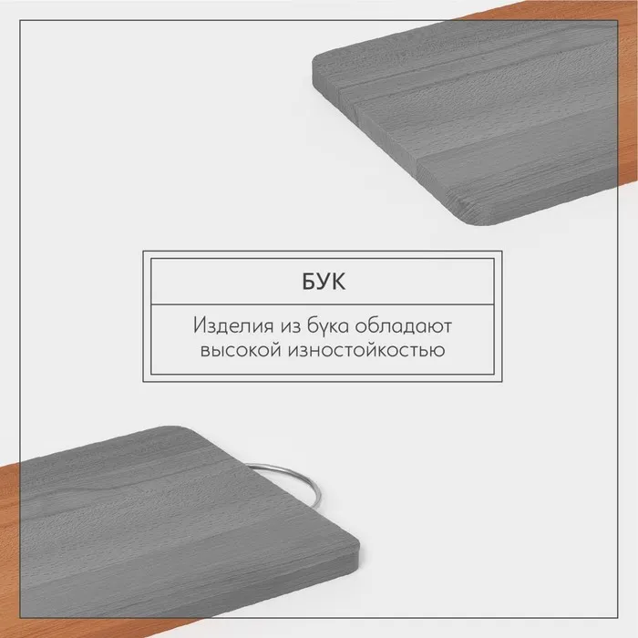 Доска разделочная деревянная Adelica, с металлической ручкой, 35×24×2 см, бук — Характеристики