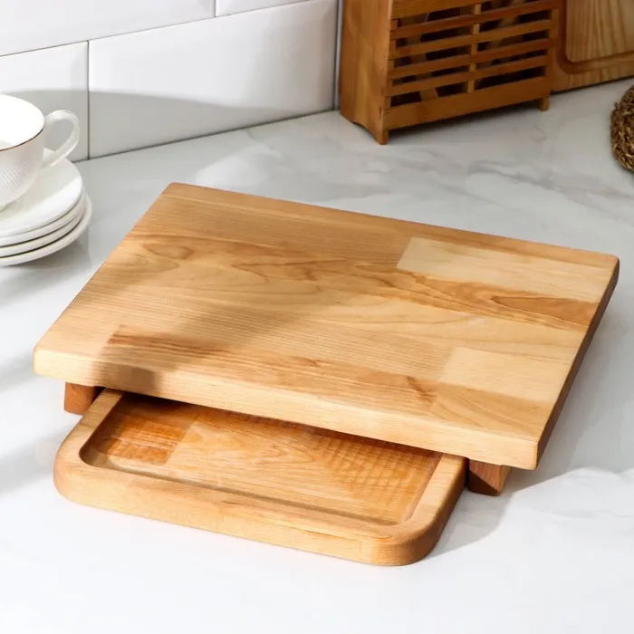 Доска разделочная деревянная Adelica, с выдвижным лотком, пропитана минеральным маслом, 30×24 см, лоток 22×22 см, берёза — Характеристики